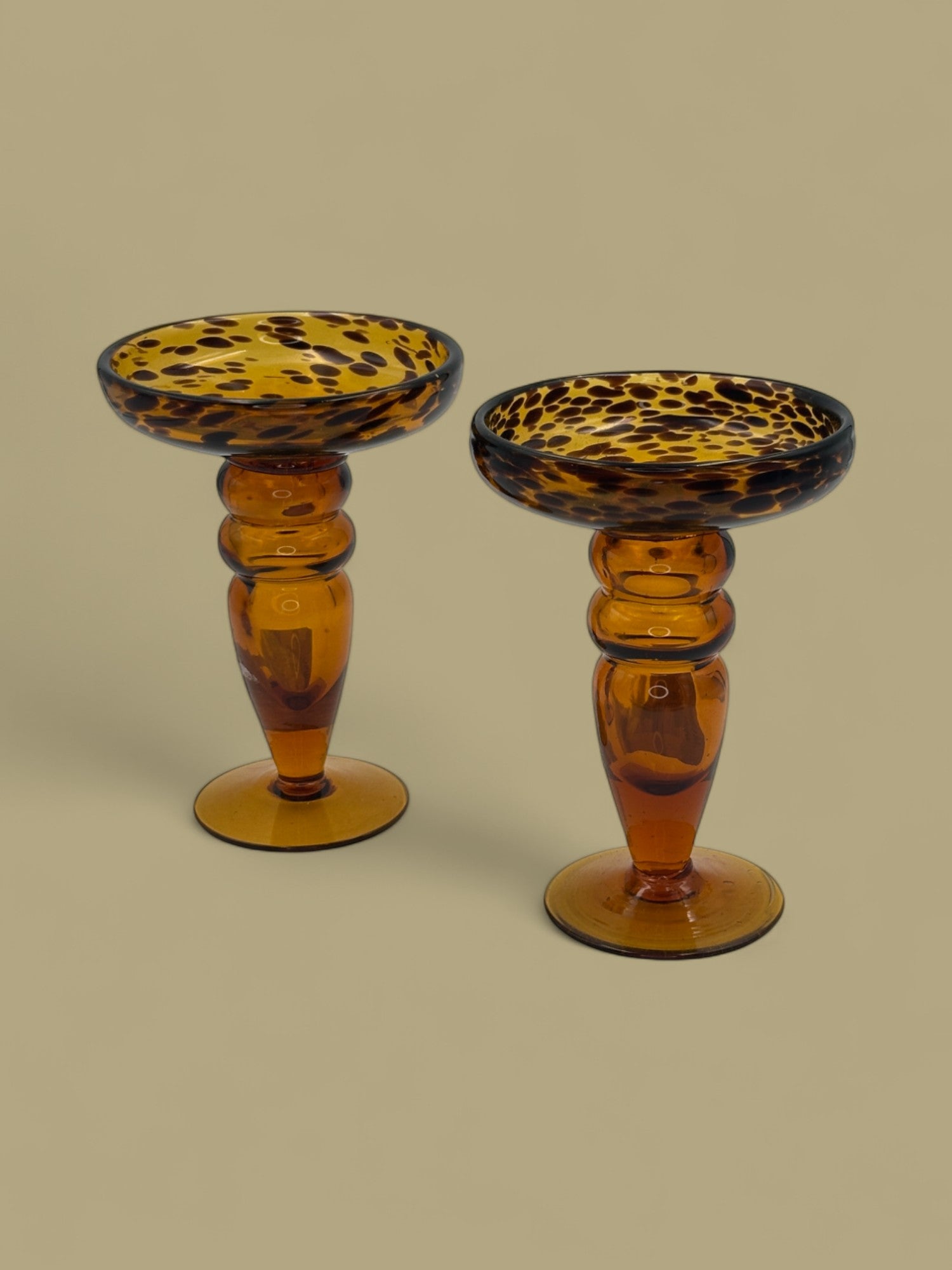 Amber Brown Cheetah Speckled Blown Glass Collectible Pillar Candle Holders