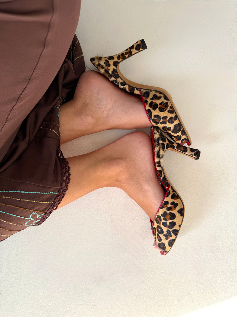 An effortless slip-on, the mule silhouette balances contrast and comfort in equal measure. Italian ponyhair brings texture and depth, while a flash of color adds an unforgettable note.