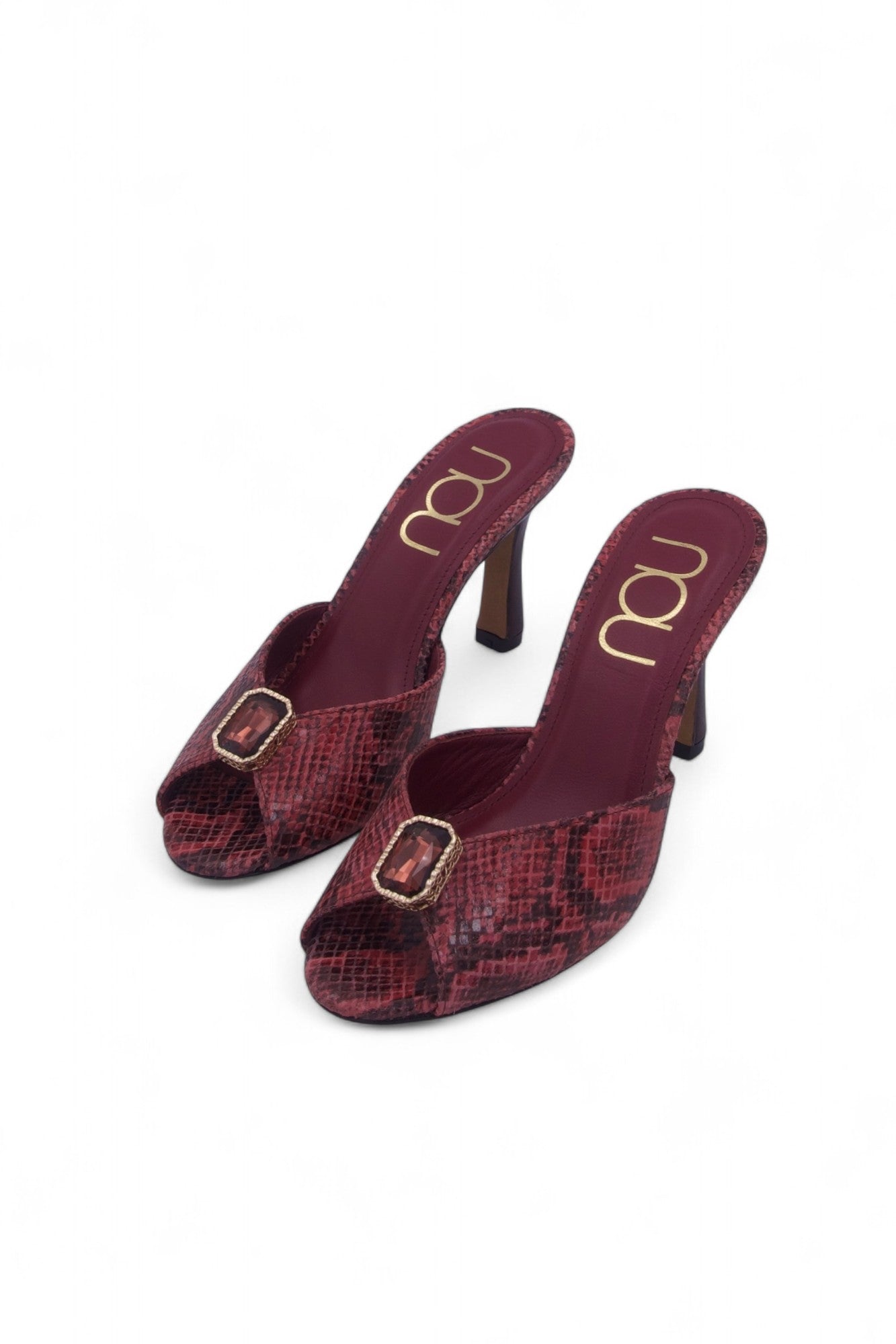 This limited-edition snakeskin style is crafted of fine leathers and adorned with a ruby gemstone embellishment.